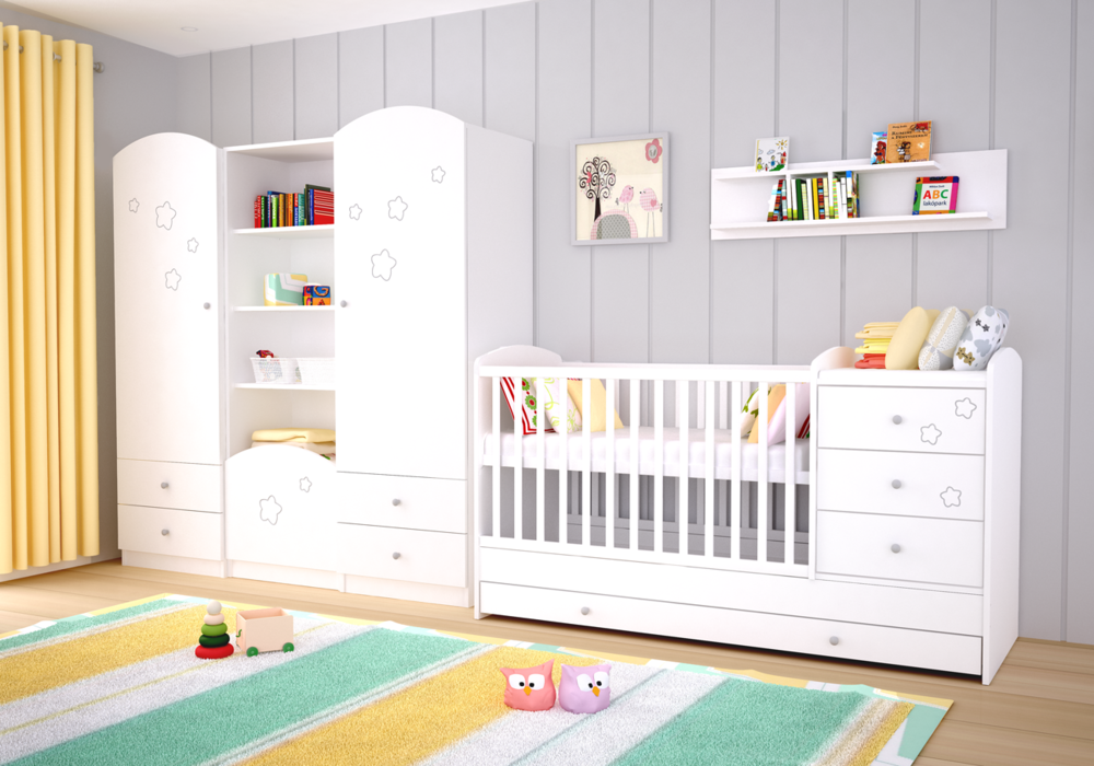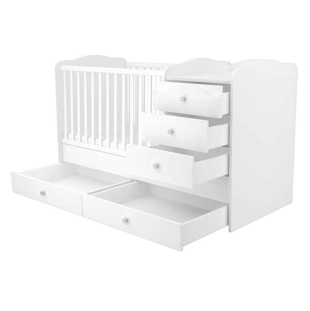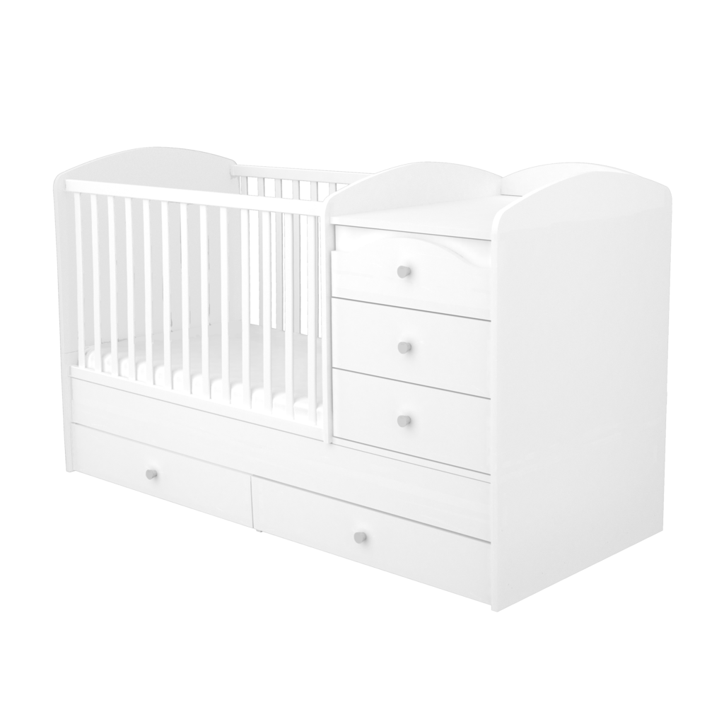 Maxi Kombi kiságyunk megfelelő választás kisebb babaszobák berendezése során, hiszen egyszerre kombinálja a klasszikus rácsos kiságyat a pelenkázószekrénnyel, ám jóval kisebb helyet elfoglalva, mint a két bútordarab külön-külön.